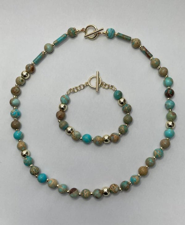 De armband vormt een mooie set met het serpentijn collier in de webshop.